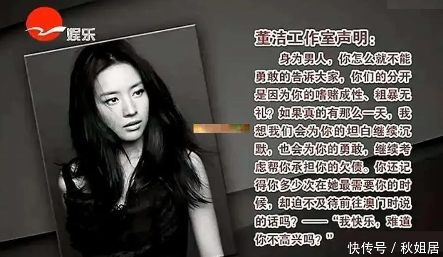 2012年,董洁工作室突然发布声明,宣布两人婚姻终结,并抛出惊人指控:称潘粤明存在家暴行为,且沉迷赌博,欠下巨额债务。